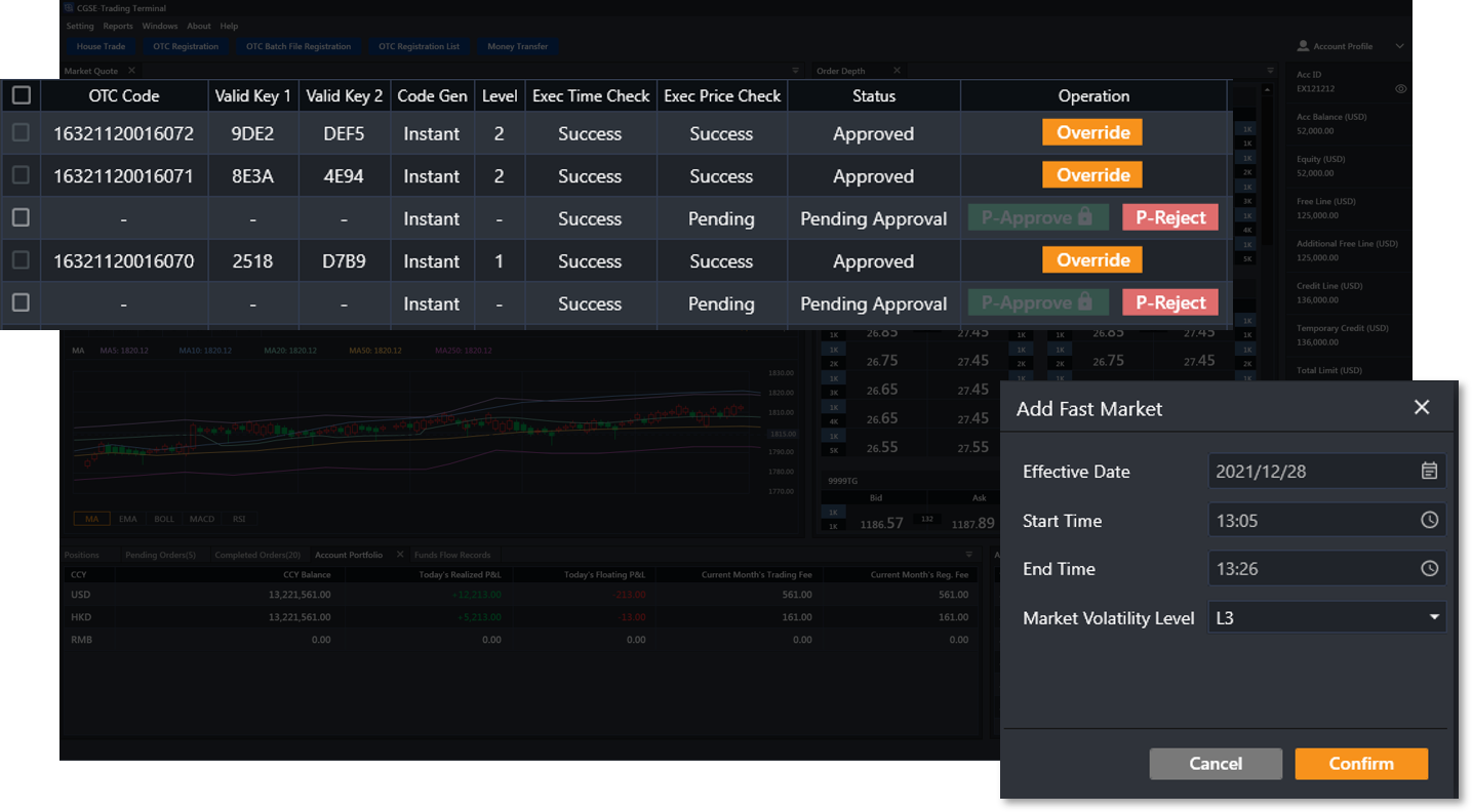 The new system has significantly improved performance, boosting average trading response times by 16x and day-end processing by 6x, all without any system downtime. This enhancement has greatly improved the trading experience for HKGX members. Additionally, the OTC code registration process has been streamlined to allow manual entries, batch uploads, and API integration, facilitating automatic OTC code generation. Furthermore, the GTP system introduces an auto-approval mechanism for OTC codes, simplifying workflows and reducing human error.